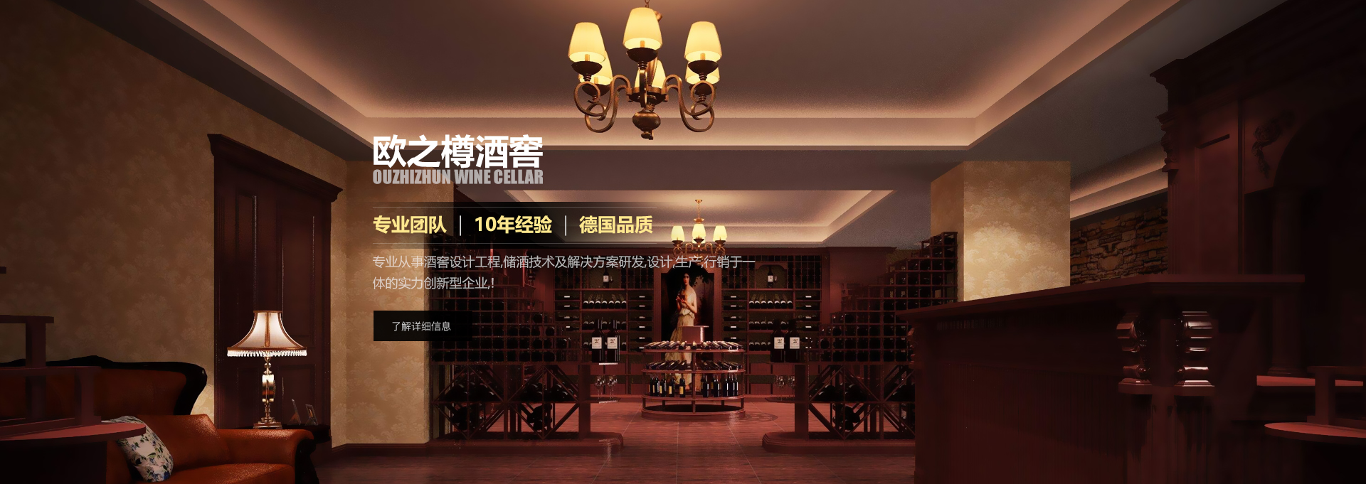 歐之樽酒窖專業(yè)的設計團隊,通過學習歐美成功酒窖的經(jīng)驗與國內(nèi)市場相結合,使得我們的設計充滿著歐美氣息的中國風。能讓你在緊張的城市氛圍中找到在大自然 中享受美酒的感覺。歐美進口的全自動控溫控濕系統(tǒng)既穩(wěn)定又方便,